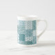 En chic Bone China Coffee Mugg, med ett mönster i Teal and White-Faux Faux-lappen mellan folkgrupperna stil. Inom ramen för Boho Bazaar-samlingen Posh & Painterly kan man enkelt anpassa mönster genom att ändra mönster-plattans riktning eller för ett helt annat utseende.