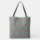 En chic Tote Bag, med en etnisk-stil, traditionell Ogee mönster i Teal, Maroon och Beige. Inom ramen för Boho Bazaar-samlingen Posh & Painterly kan man enkelt anpassa mönster genom att ändra mönster-plattans riktning eller för ett helt annat utseende.