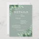Allt i en bröllopsinbjudning innehåller din ceremoni på framsidan och alla dina bröllop-detaljer på baksidan tillsammans med elegant vattenfärgseukalyptus löv på baksidan. MATCHING-objekt i vår butik.