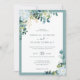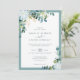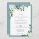 Skapa den romantiska perfekten bröllop svit med detta inbjudningskort för elegant med en sofistikerad bukett av vita nattdrottningar (epiphyllum hookeri), tillsammans med ljusa och mjölkaktiga eucalyptus löv och kompletterat med mousserande gula löv (tryckta) över en klassisk vit bakgrund omgiven av en modern teal ram