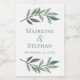 Ett kalligrafiskt skript av elegant grönt med två eucalyptus löv på båda sidor för att dekorera detta vackra, minimalistiska fall-bröllop mini vin-märke för en möhippa brunch eller par dusch. Chic, höstdecor bröllop för en trädgård tillfälle.