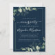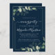 Chic Eucalyptus Navy Blue Wedding Reception Inbjudningar