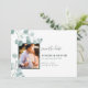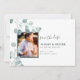 Meddela din speciella dag med den här eleganten Spara datumkorten med en bild av vattenfärgen eukalyptus och en platshållare för fotot. Andra samordningsartiklar som finns i vår Silver-dollar Eucalyptus Bröllop Stationery Suite.