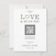 The card features a floral heart-shaped wreath in soft pink tones, highlighting the "o" in the word "love". This delicate and romantic design adds a personal and charming touch to your invitation. The design includes an elegant QR code that makes it easy for guests to confirm their attendance and access more details about the event.