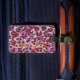 Chic färgrik röd lila cheetahtryckmonogram bagagebricka