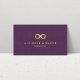 En oändlighetssymbol för elegant faux metallic guld blir en unik logotyp på denna mall för visitkort för snyggt. Om du sätter på en bakgrundsbild av lila linen gör paletten färg och det rena typsnittet att detta kort blir chic och modernt. © 1201AM-KREATIV