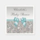 Chic Faux Teal Bow Silver Sequins Baby Shower Pappersservett