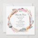 Chic fjädrar andedräkt. Boho bröllop spara datum Inbjudningar