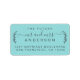 Chic, modern och enkel bröllop-returadressetikett med den framtida texten Mr. och Mrs. in off-black handskriftlig elegant script calligraphy och a snyggt touch of rustic foliage on a turocise blue bakgrund. Lägg bara till ditt namn och adress i all din bröllop-e-post, till exempel bröllopsinbjudningar, OSA kuvert och spara datumet. Enbart designad för dig av Lycklig Dolphin Studio. Kontakta oss på happydolphinstudio@outlook.com om du behöver hjälp eller matchande produkter. Vi är lycklig för att hjälpa dig att göra bröllop till den vackraste dagen!