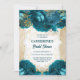Vackra blåblommor av teal-blått ro-blommigt har faux delikat guld-filigree och löv som är sammanflätat med en faux guld bakgrund som har en vit scallopform på vilken anpassningsbarnas ordalydelse visas. Den här chicen och snyggten är perfekt för en möhippa med temat "blått, vitt och guld" eller "ro blommigt", botanisk födelsedagsfest eller till och med ett affärsarrangemang i vår. Anpassa ordalydelsen för att se till att det kostym ditt speciella firande.