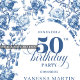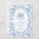 Chic French Toile de Jouy Blue Roses 50th Birthday Inbjudningar