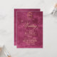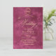 Elegant snyggt fuchsia och guld moderna bröllopsinbjudan med ett handskrivet typsnitt av eleganten med kurvor och ett monogram av bruden och brudgummen. Klass och elegant, enkel och modern inbjudan.