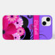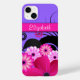 © Sunny Mars Design. Hibiscus: Fuchsia Fodral-Mate Mobil Covers - Anpassade girly fuchsia blommigt anpassade casess med söt rosa och lila hibiscus blommigt design mot lila.