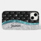 Söt chic och elegant gifaux faux silver teal turquise aqua glitter och noshörningar som har svart tuff design för att skapa en speciell unik snyggt fodral för att skydda din enhet. Vacker, modern och coola täckning för den trendviga och konsthundande höftledaren. Den här snyggtens sofistikerade utformning skulle vara underbar för flickor som har klassi och gnidig design. Visa upp din personliga stil, se modern ut, trendig och känn snyggt med en unik design på ett mobilenhetstillbehör eller anpassa den till en annan produkt du vill ha. Vare sig det gäller valentines day, jul eller som gåva i allmänhet, så är det en underbar gågata för alla kvinnor som kärlek har en modern glatt elegans. OBSERVERA: Det här är platt tryckt grafik - ingen riktig glitter, juveler eller upphöjda delar.
