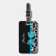 En chic svart och vit giraffe för utskrift av bagaget med ett trendig vattenblått band som är fastsatt i en gigantisk båge. Anpassa den här snygga designen för djurtryck genom att lägga till ditt namn. Platt utskriven bild, inte verklig båge.