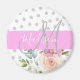 Chic och giftig monogrammagnet med vår blommigt rosa och persikoblommor och vit bakgrund med grått polka dots. Ditt eget namn och monogram är skrivna i ett elegant-handskript, vitt och grått med rosa bakgrund. Du kan ändra texten färg och teckensnittet stil och storlekt med hjälp av anpassningsalternativet.