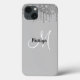 Chic Girly Silver Glitter driver Monogram Namn iPhone 13 Fodral med allt det som ligger dig kärlek. Den här Chicen är gigantisk fodral är lätt att anpassa med ditt monogram och namn. Design har Faux silver glitter drops-effekt. Det finns fler alternativ för färg att välja mellan eller gå för att anpassa för mer typsnitt och färger.
