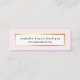 Dessa mini-affärskort i eleganten har en mjuk färgad i rosa gräns och en mittvit fyrkant med faux-guld i gräns. Anpassa enkelt till ditt företag eller ditt företag namn och din kontaktinformation. Perfekt för alla uppskalade, feminina och glamorösa affärsverksamheter.
