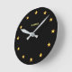 Modern chic glittrar stjärnor på svart väggklocka. Soltext kan vara personlig.
