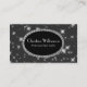 Chic och trendig rhinestone dubbad ram som förlägger ditt namn och som betitlar med en sparkly bakgrund för svart stjärna. Denna är en visitkortmall som gör det toppet lätt att personifiera med din egna information. Detta kort skulle är anslår för en hårstylist (Cosmetologist), konsulent för Makeupkonstnär, mode, representativ skönhettillförsel, manicurist, juvelerare eller någon annan karriär som måste att göra med skönhet, mode eller smycken.