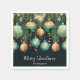 Elegant Christmas holiday napkins feature pine branches, green and gold Christmas ornaments and red ribbons on deep green with Merry Christmas and your name in chic lettering, perfect for your festive holiday gathering. MATCHING items in our collection.