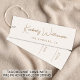 Elegant och chic lätt krämfärg kläder, tillbehör, smycken, boutique, etc., pris Märke med en minimalistisk vibe med ditt namn eller varumärke visat i en stilfull guldfärgad signatur skrift. Lägg till ytterligare text nedan i enkel modern typografi. På baksidan kan du anpassa storlek och pris mallar genom att redigera i design verktyget. Observera att Zazzle inte stansar hålet eller tillhandahåller snöre.