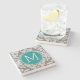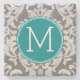 Chic Grå och Teal Damask Mönster Anpassad Monogram Underlägg Sten
