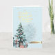 Cute gnome med en blå bakgrund i gräs träd gör detta till en perfekt jul eller Julhälsningar kort för vänner och familj.