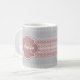 En chic grått- och stojefågen rosa stickade mönster mugg med ett kvatrefolielemblem för färgad av aska. Anpassa genom att lägga till ditt namn och inledande monogrammet. Detta är en del av hamnens Mist Sticka Mönster Ash Ro Monogram-samling. Platt tryckt bild, INTE stickad snöre.