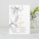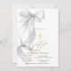 Chic Gray Bow Gold Cross Baptism Inbjudningar