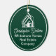 This professional realtor Christmas ornament is custom made with your real estate company name under the modern cursive script and house image. These chic green realty business promotional gifts feature a house logo image for home builder or realty agent company marketing.