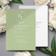 Chic Grönt Blommigt Monogram bröllopsinbjudan Inbjudningar
