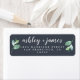 Chic, modern och enkel bröllop-returadressetikett med namn i manusgrafi med vita eleganter med snyggt av grönt på en mörk blått bakgrund. Lägg bara till namn och adress. Enbart designad för dig av Lycklig Dolphin Studio. Kontakta oss på happydolphinstudio@outlook.com om du behöver hjälp eller matchande produkter. Vi är lycklig för att hjälpa dig att göra bröllop till den vackraste dagen!
