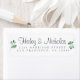 Chic, enkel och modern returadressetikett för bröllop ger namn i manuell manusgrafi och typografi i off-black elegant på vit bakgrund med en snyggt av grönt eucalyptus foliage. Lägg bara till namn och adress på det osa klistermärket. Enbart designad för dig av Lycklig Dolphin Studio. Kontakta oss på happydolphinstudio@outlook.com om du behöver hjälp eller matchande produkter. Vi är lycklig för att hjälpa dig att göra bröllop till den vackraste dagen!
