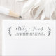 Chic, modern och enkel returadressetikett för bröllop med namn i handskrivet skript i off-black elegant på en vit bakgrund med en snyggt av rustik bladfilm. Lägg bara till namn och adress. Enbart designad för dig av Lycklig Dolphin Studio. Kontakta oss på happydolphinstudio@outlook.com om du behöver hjälp eller matchande produkter. Vi är lycklig för att hjälpa dig att göra bröllop till den vackraste dagen!