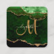 Chic Grönt Guld Glitter Agate-skript Monogram Fyrkantigt Visitkort