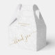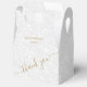 Elegant vit på vit filigree-utskrift mönster med namn och tack i chic guld-utskriften på framsidan. Dessa vackra favoritlådor för stil är vackra för bröllopsfavörer, möhippor eller något speciellt tillfälle.