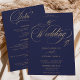 Chic och elegant faux-folie från guld allt i en kalligrafbröllopsinbjudan med osa, logi, detaljer och mer information. Med ett vackert kalligrafiskript för penseln på redigerbart marint blått.