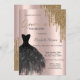 Elegant svart klänning och guld glitter droppar på en rosa guld bakgrund.
