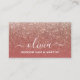 Anpassa enkelt dessa affärskort för modern chic i professionell med elegant handskript. Bakgrundsmönstret har en glatt effekt på Ro guld faux glitter. Perfekt för makeup artist och hårstylist.