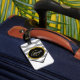 Den svarta och vita glasrutan sätter av överkanten på bagagetaggen med en kalligrafcirkel i guld glitter med namn och den ursprungliga brev monogrammallstexten över ett vitt grund. Fyll i mallen fält för båda sidor, ta bort det ursprungliga brev eller klicka på anpassa för att välja ett typsnitt stil, storlekt och färg som du vill använda.