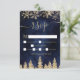 Det är dags att fira ert vintertema bröllop med denna lyxa chic guld snöflingor-gnistor och gult glitter-skog i guld glitter på gräs-träd på en elegant marin blå vattenfärgsbakgrund, med en modern coola-typsnitt. Perfekt OSA kort för vintern under bröllop.