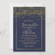 Chic guld konetti marinblå typografi bröllop inbjudningar
