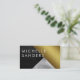 Chic Guld Leather Snyggt Glass Modern Art Affärskort. Denna moderna och lyxiga 3-paneldesign är en höger för konstnärer i mode, makeup artist, evenemangsplanerare, stilist och de i mode och skönhetsindustrier. Lägg till text och företagsinformation i affärskorten för mallredot. Kontakta designern för eventuella designförfrågningar. ©2010 Joshua Martin