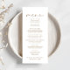 Chic-meny för din bröllopsmottagning, förlovningsfest, repetitionsmiddag och annat firande med "meny" i ett modernt guld-skript, din anpassade meny i enkel guld typografi och ditt första namn- och händelsemedag i elegant serif-typografi.