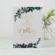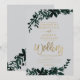 Chic guld typografi Blommigt grått bröllopsinbjudan med handmålad grönt vattenfärgsblad. Grått färg har full anpassade