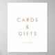 Detta stilrena kort med guldtypografi och skylt för presenter är perfekt för ett modernt bröllop eller brudvisning. Den enkla designen har klassisk minimalistisk guld- och vit typografi med en rustik boho-känsla. Kan anpassas i valfri färg. Håll designen minimal och elegant som den är, eller anpassa den genom att lägga till egna grafik och konstverk. Textraden längst ner på skylten kan anpassas med datum, namnen på bruden och brudgummen eller ett kort meddelande som "Tack". Denna skylt kan användas för ett bröllop eller någon annan händelse eller fest.