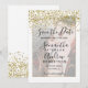 Chic guld konetti, vit typografi bröllop spara datum, lägg till ett foto.