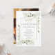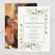 Med känslig akvarellgrönska kan denna trendiga bröllopsinbjudan för par anpassas med era initialer i guldmonogram och speciell information om bröllopsfirande, med ert speciella foto på baksidan. Designad av Thisisnotme©