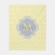 En chic gult art decoarched scallop fleece filet med ett mjukt grått quatrefoil-märke som du kan anpassa genom att enkelt lägga till ditt eget monogram och namn. Detta är en del av "Meadowlark Scallops Harbour Mist Monogram Vår Collection". Välj mellan tre storlekar.